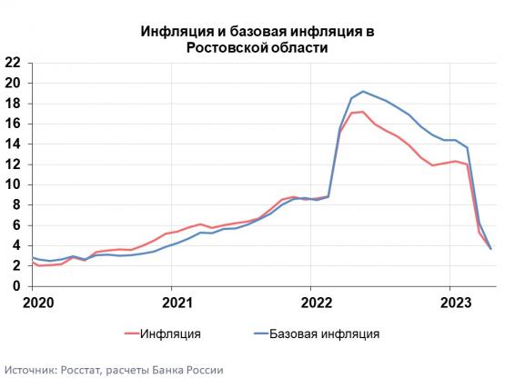 Годовая инфляция в Ростовской области по итогам апреля 2023 года снизилась до 3,7% с 5,32% в марте, говорится в материалах Южного ГУ Банка России.
