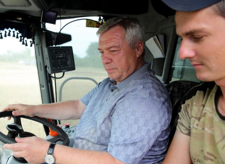 Губернатор Василий Голубев сел за штурвал комбайна и намолотил 8 тонн хлеба