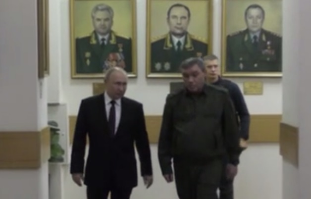 Владимир Путин провёл ночное совещание в штабе Южного военного округа, где заслушал доклады начальника Генштаба ВС РФ Валерия Герасимова, командующих направлений, других высших военных чинов.