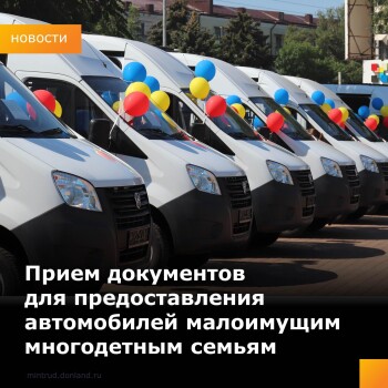Прием документов для предоставления автомобилей малоимущим многодетным семьям