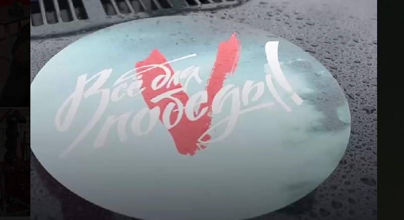 Фото: Надпись "Всё для победы" на наклейке, кадр ПРО