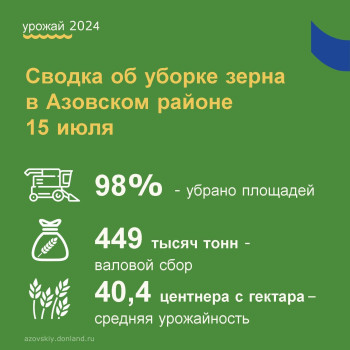 По состоянию на 15 июля убрано 98% посевных площадей. Валовой сбор достиг 450 тысяч тонн.