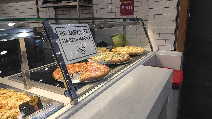 Фото: Предупреждение о масочном режиме в пиццерии Ростова, кадр из архива 1rnd