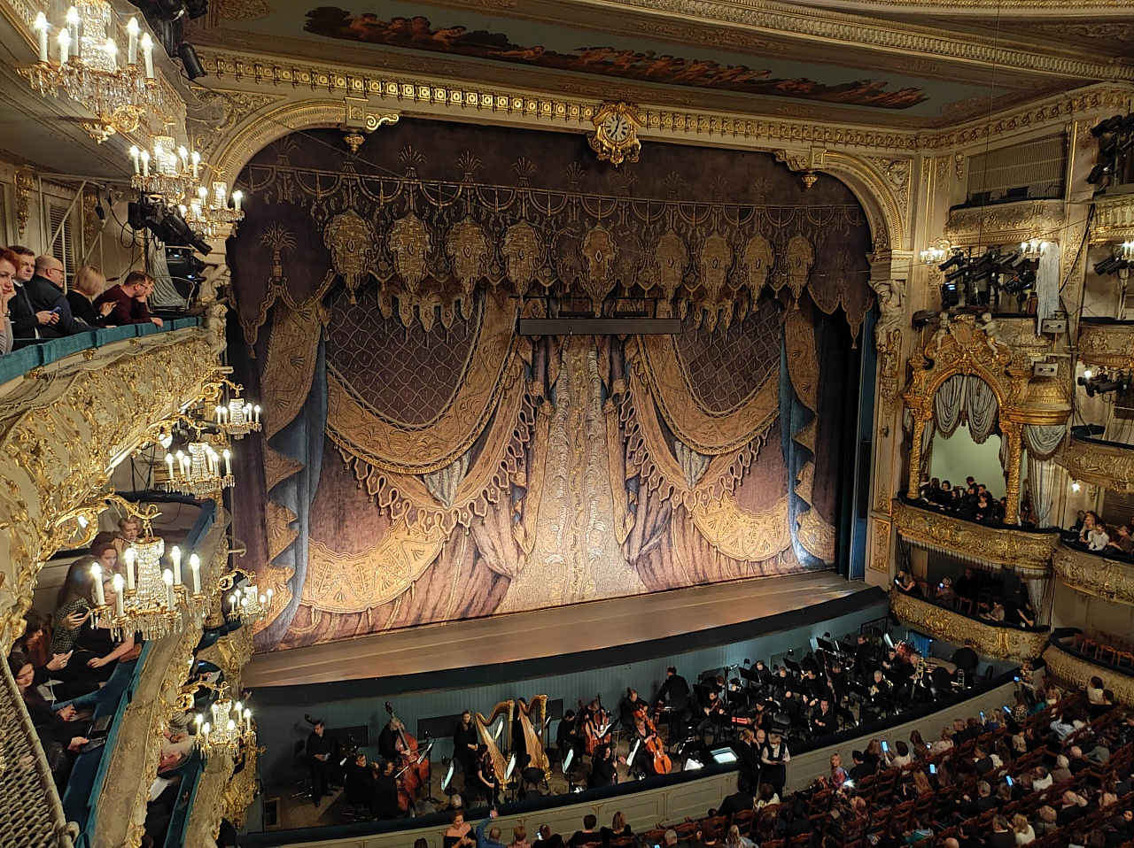 Вообще, Мариинка, как и Большой, это несколько залов. Мариинка-1 – это историческая сцена, Мариинка-2 открыта напротив главного здания в 2013 году и соединена с основным крытым переходом. И там и там – вместительные зрительные залы с прекрасной акустикой. Правда, историческое здание не совсем удобно для зрителей. После просторного и яркого Ростовского музтеатра здесь ощущаешь себя не очень. Но когда начинается спектакль…