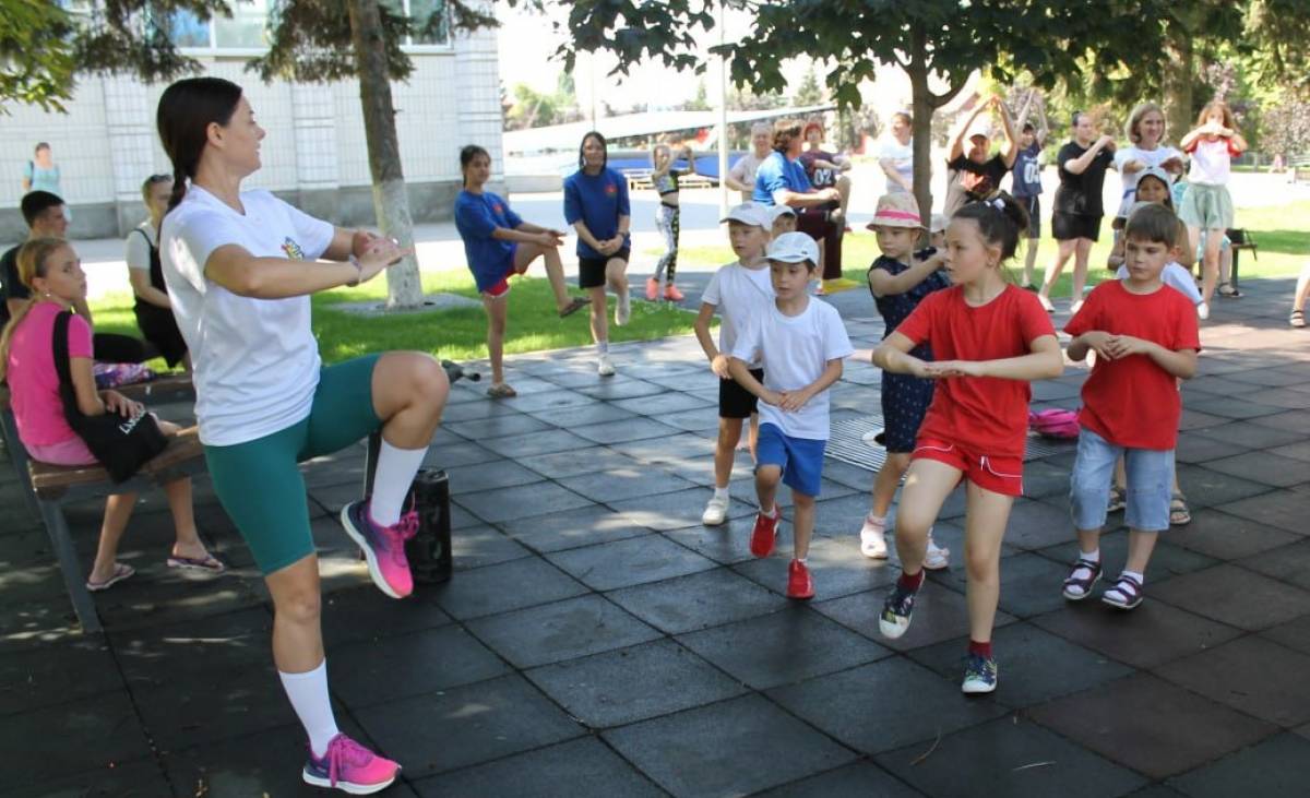 В рамках марафона в поселке Матвеев Курган прошла массовая зарядка на свежем воздухе.