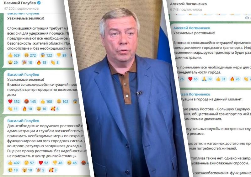 «В истории России были времена, когда наше общество хотели расколоть и разжечь пламя гражданской войны. Президент в своем обращении напомнил: однажды это уже было в нашем отечестве, и это привело к катастрофе. Дон хорошо помнит то горькое время. Нельзя этого допустить снова. Ростовская область вместе с Президентом! Уважаемые земляки, мы должны быть едины!», — заявил губернатор.
