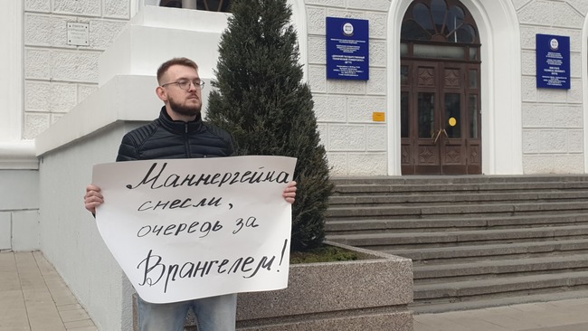 11 ноября прошли очередные одиночные пикеты возле главного корпуса ДГТУ с требованием демонтировать памятник белому генералу П. Врангелю на территории кадетского корпуса.