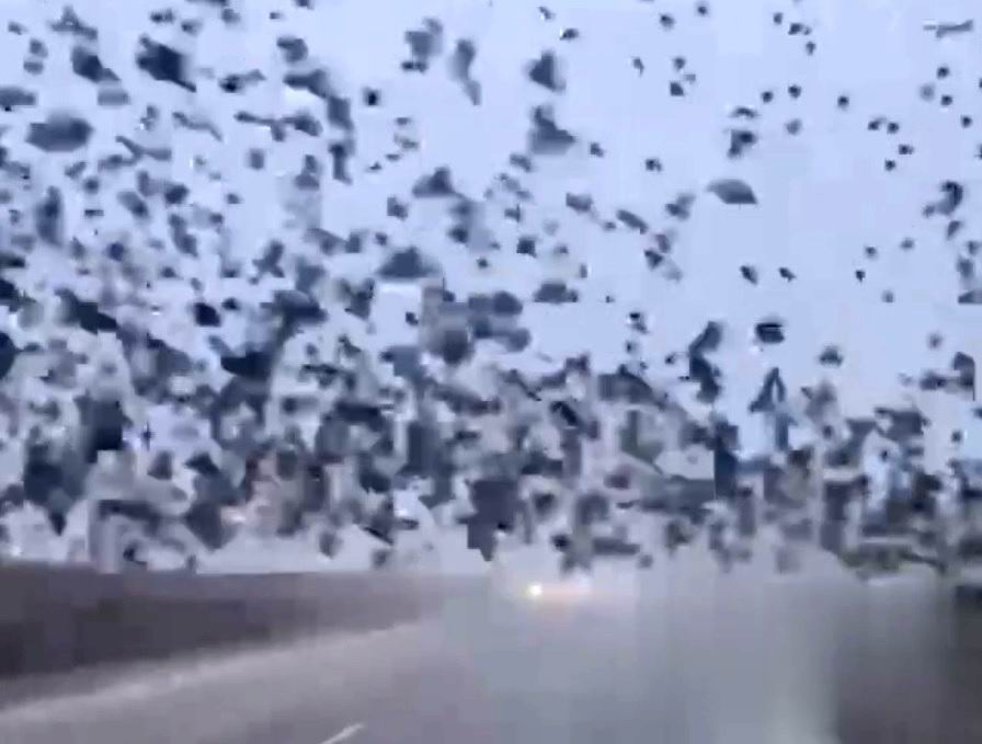 Вроде бы ни одной птицы и ни одного авто не пострадало. Однако трудно представить, что может случиться, если такая стая окажется на пути взлетающего или идущего на посадку самолёта.