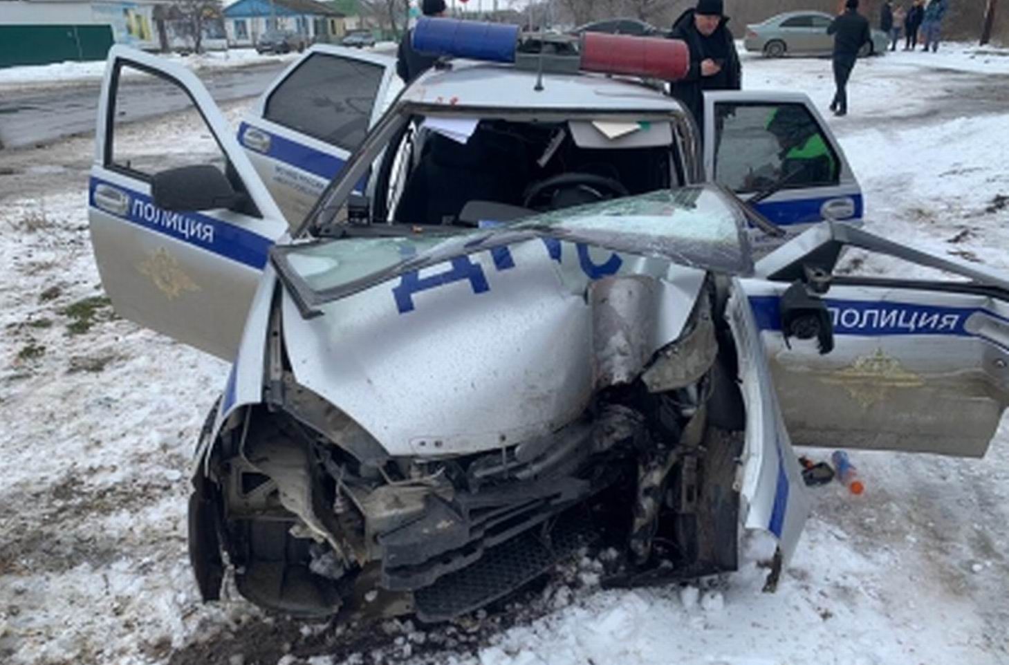 В результате ДТП патрульную машину вынесло на обочину - она столкнулась с опорой ЛЭП.