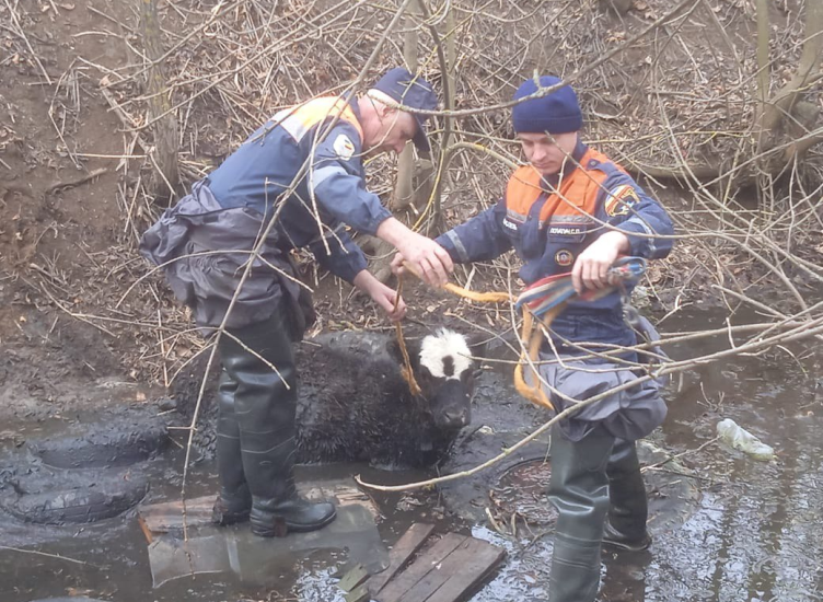 Жалобно мычал: в поселке Веселый спасатели извлекли из канала сорвавшегося теленка