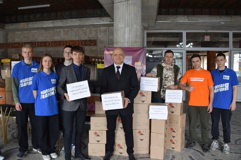 Председатель городской Думы Константин Корнеев, заместитель председателя комитета по социальной политике Вадим Новоселов передали от депутатов и аппарата городской Думы для бойцов СВО 52 коробки с газовыми баллонами (630 штук). Они поблагодарил волонтеров и всех откликнувшихся шахтинцев за неравнодушие и посильный вклад в общее дело – приближение нашей Победы. В ближайшее время собранный груз доставят на передовую.
