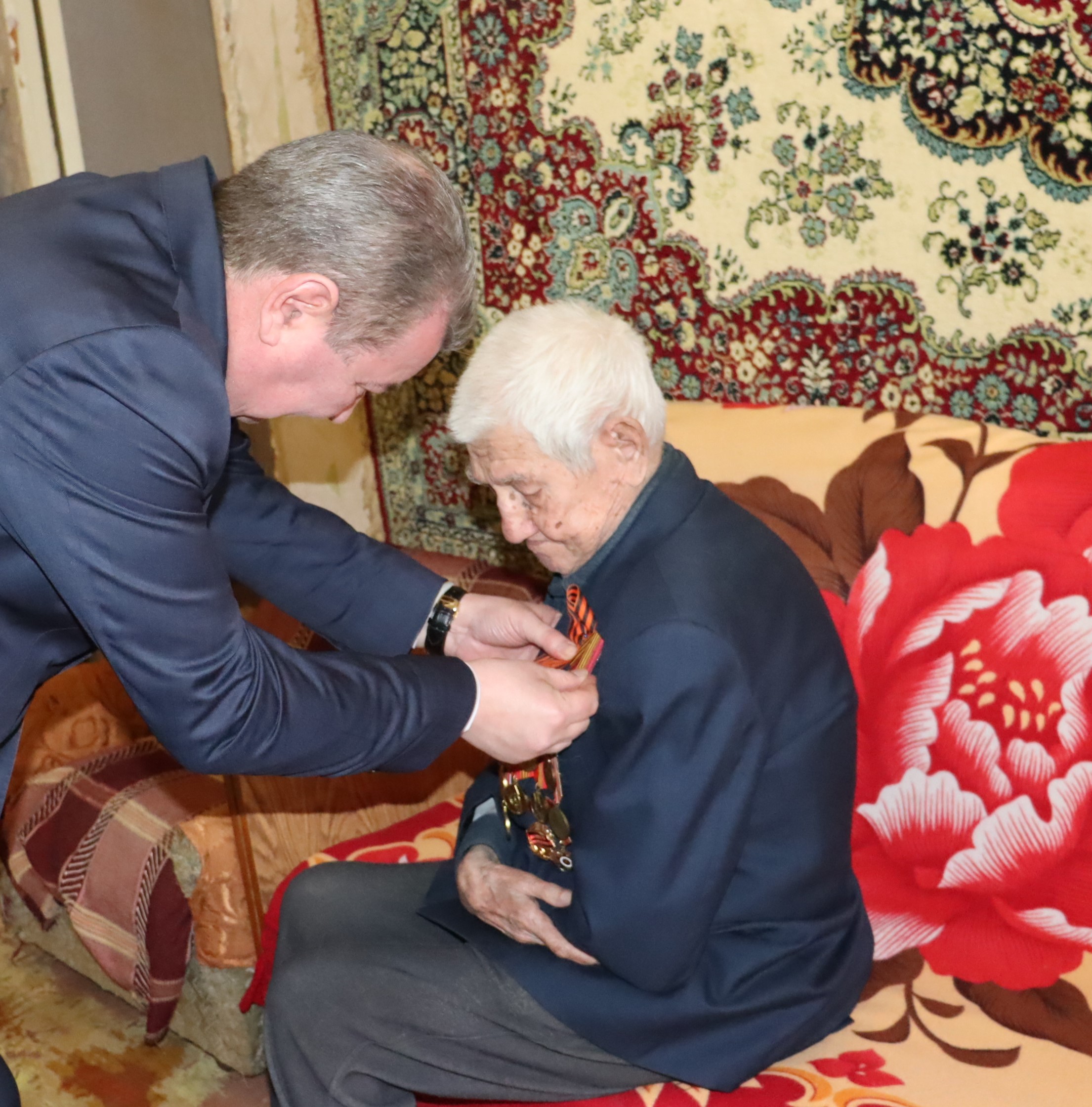 Глава Батайска Роман Волошин вручил юбилейную медаль «80 лет Победы в Великой Отечественной войне 1941-1945 гг.». ветерану Сергею Каруна