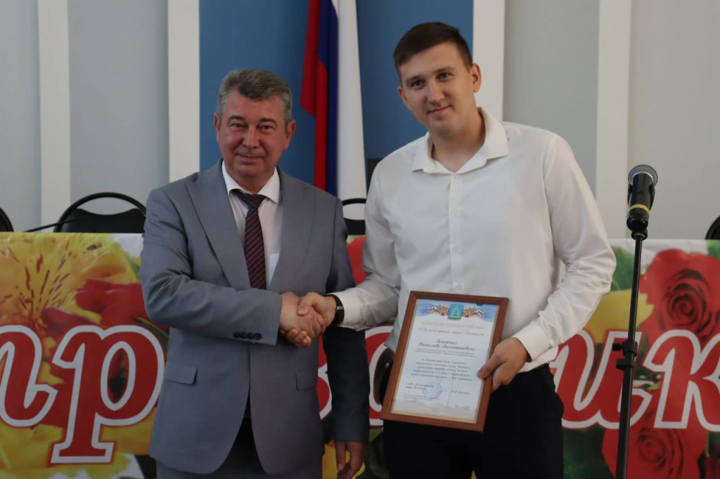 С радостью отмечу, что в Батайске решена многолетняя проблема обманутых дольщиков. Благодаря труду строителей в Батайске появляются новые учреждения социальной инфраструктуры . - отметил глава Администрации в своем выступлении, затем вручил Благодарственные письма.