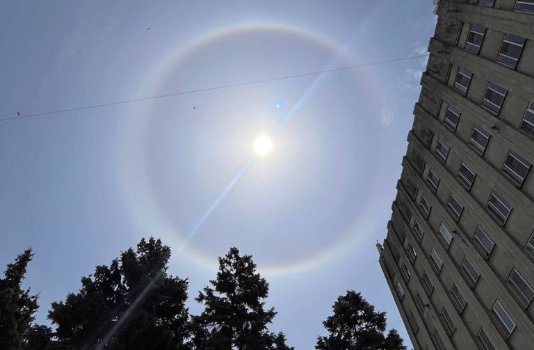 Сегодня, 8 июня, таганрожцы могут наблюдать в небе довольно редкое природное явление — солнечное гало.