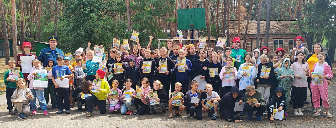 Заместитель начальника 62 ПСЧ Добрынин Александр и инструктор по противопожарной профилактике ВДПО г. Миллерово Фисенко Анастасия Андреевна в игровой форме разъяснили ребятам, какие правила необходимо соблюдать, чтобы не допустить возникновение пожара, напомнили детям номера экстренных служб «101», «112», а также рассказали, что необходимо делать и как нужно себя вести при пожаре.