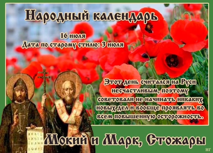 16 июля 2023 года отмечено в народном календаре как Маков день, а в православном – как день святых Мокия и Марка. Другое его название – Стожары (так именуется скопление Плеяды в созвездии Тельца). С давних времен в этот день люди наблюдали за небом и, если видели тесную группу звезд, то отправлялись на охоту в лес, а если нет, сидели дома от греха подальше.