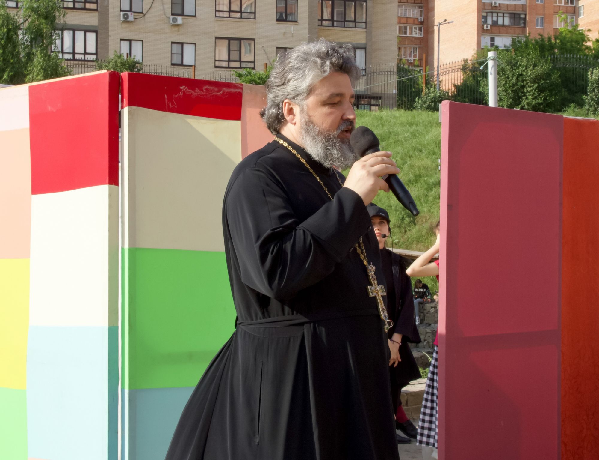 В минувшее воскресенье в амфитеатре Георгиевского сада дружно и весело отметили окончание учебного года в нашей воскресной школе. Праздник открыл настоятель прихода отец Валерий Волощук. Батюшка поздравил всех с днем Святой Троицы и поприветствовал воспитанников, педагогов, родителей и гостей.