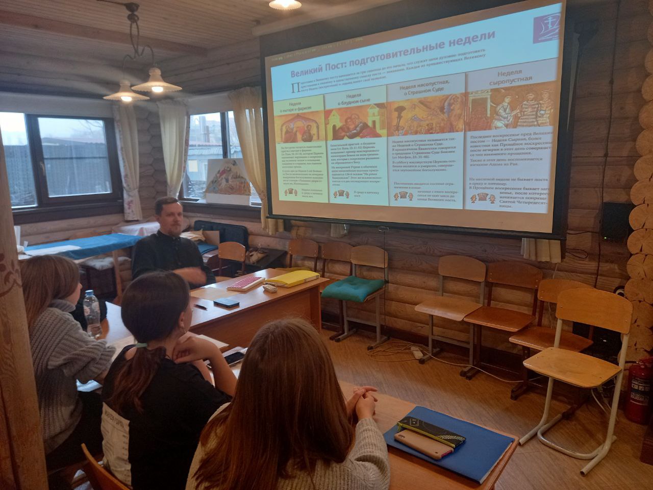 В старшей группе воскресной школы говорили с отцом Романом о подготовительных неделях к Великому посту.
