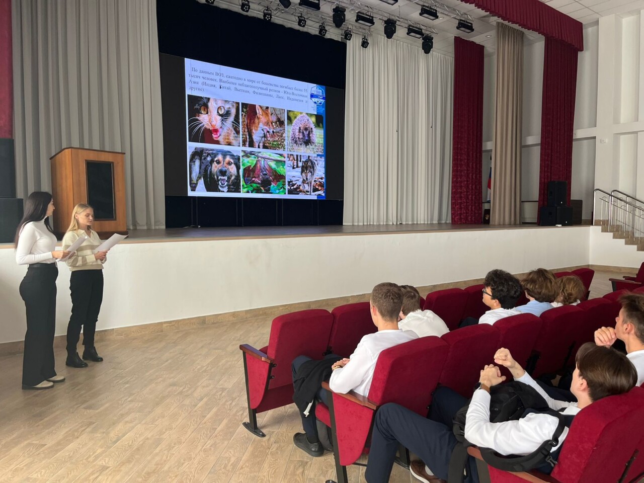 Преподаватели кафедры эпидемиологии медицинского университета со студентами 4-6 курсов медико-профилактического факультета встретились с обучающимися школы №5, гимназий №14 и №45, лицеев №11 и №51, лицея №50 при ДГТУ, санаторной школы-интерната №28 Ростова-на-Дону и рассказали им об опасности бешенства, необходимости прививок, внимательного и ответственного отношения к питомцам.