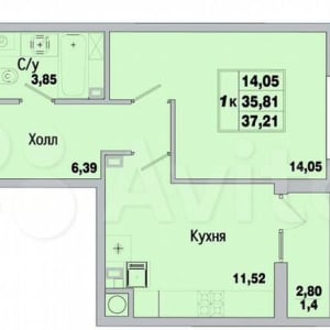 - Общая площадь: 37.2 м²