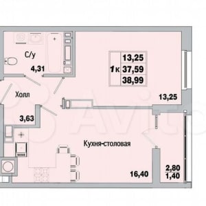 - Общая площадь: 39 м²