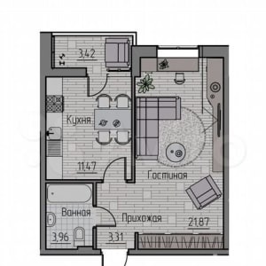 - Общая площадь: 42.3 м²