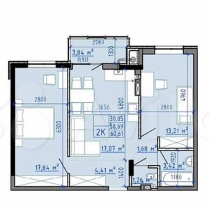 - Общая площадь: 60.6 м²