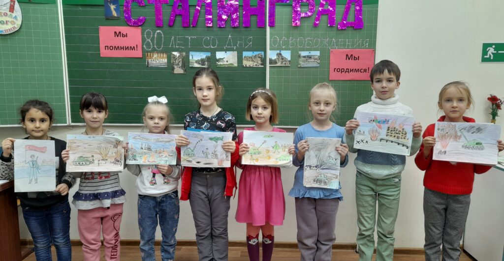 Наши воспитанники совершили виртуальную экскурсию на Мамаев курган, познакомились с подвигами защитников Сталинграда, посвятили им литературную композицию. Свои впечатления ребята воплотили в рисунках на тему «Сталин-градская битва глазами детей». Работы получились искренними, они вдохновляют на размышления о мире, Родине, нашей земле, — поделилась впечатлениями педагог дополнительного образования Наталья Белёва.