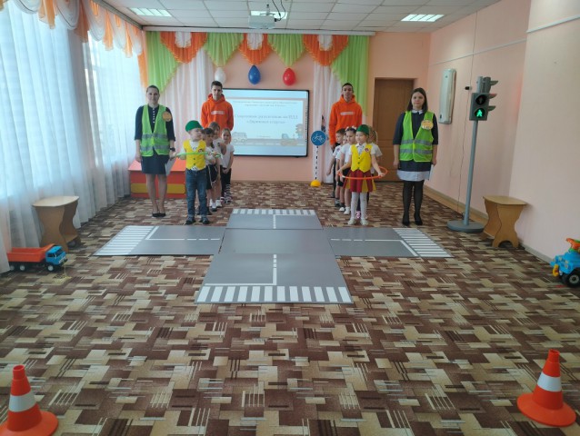 Команды воспитанников «Автогонщики» и «Регулировщики» выполняли задания в интерактивной игре, соревновались в спортивных эстафетах.