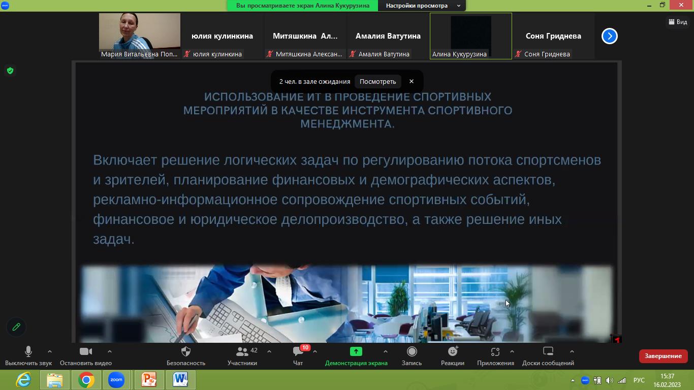 16 февраля 2023 г. состоялась XIII Региональная научно-практическая конференция студентов, аспирантов, молодых ученых «Физическая культура, спорт и туризм: проблемы и пути развития», проводимая кафедрой физического воспитания, спорта и туризма РГЭУ (РИНХ).