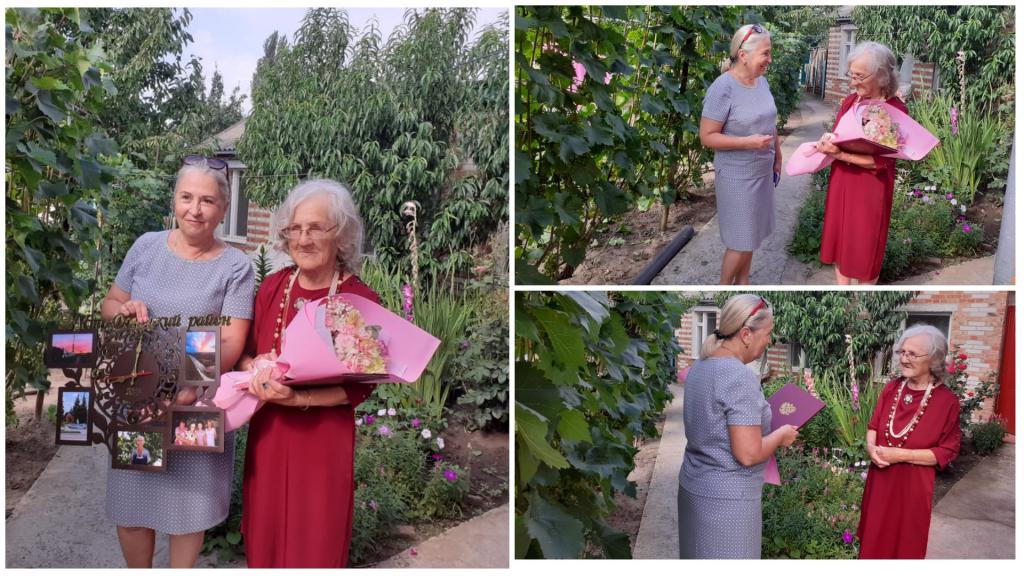 24 июля отметила свой 90-летий юбилей Моисеева Анна Михайловна. По поручению главы Администрации Усть-Донецкого района Виктора Михайловича Гуснай поздравила теплыми словами, вручила Благодарственное письмо и памятный подарок заместитель главы Администрации района Марианна Гагулина.