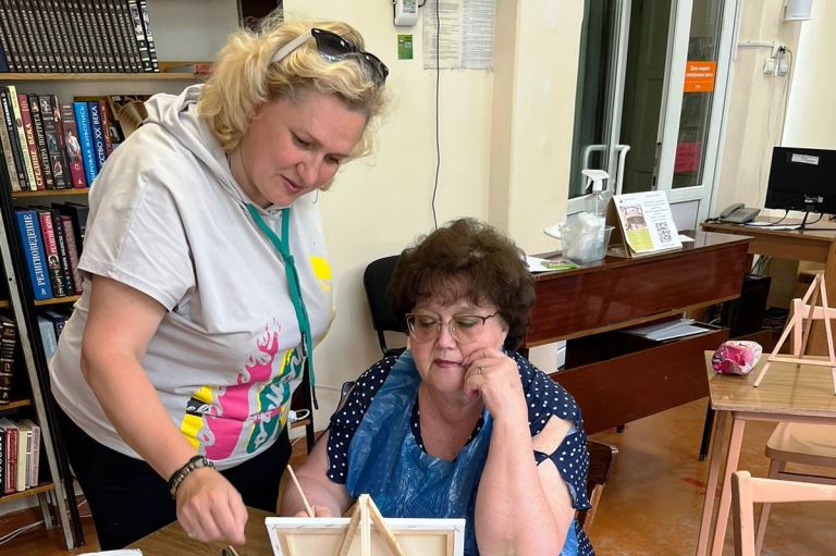 Член Союза художников Наталья Журавлёва провела мастер-класс «Картина масляными красками» для таганржцев. Самыми активными участниками мероприятия стали активисты и жители КТОСа № 22.