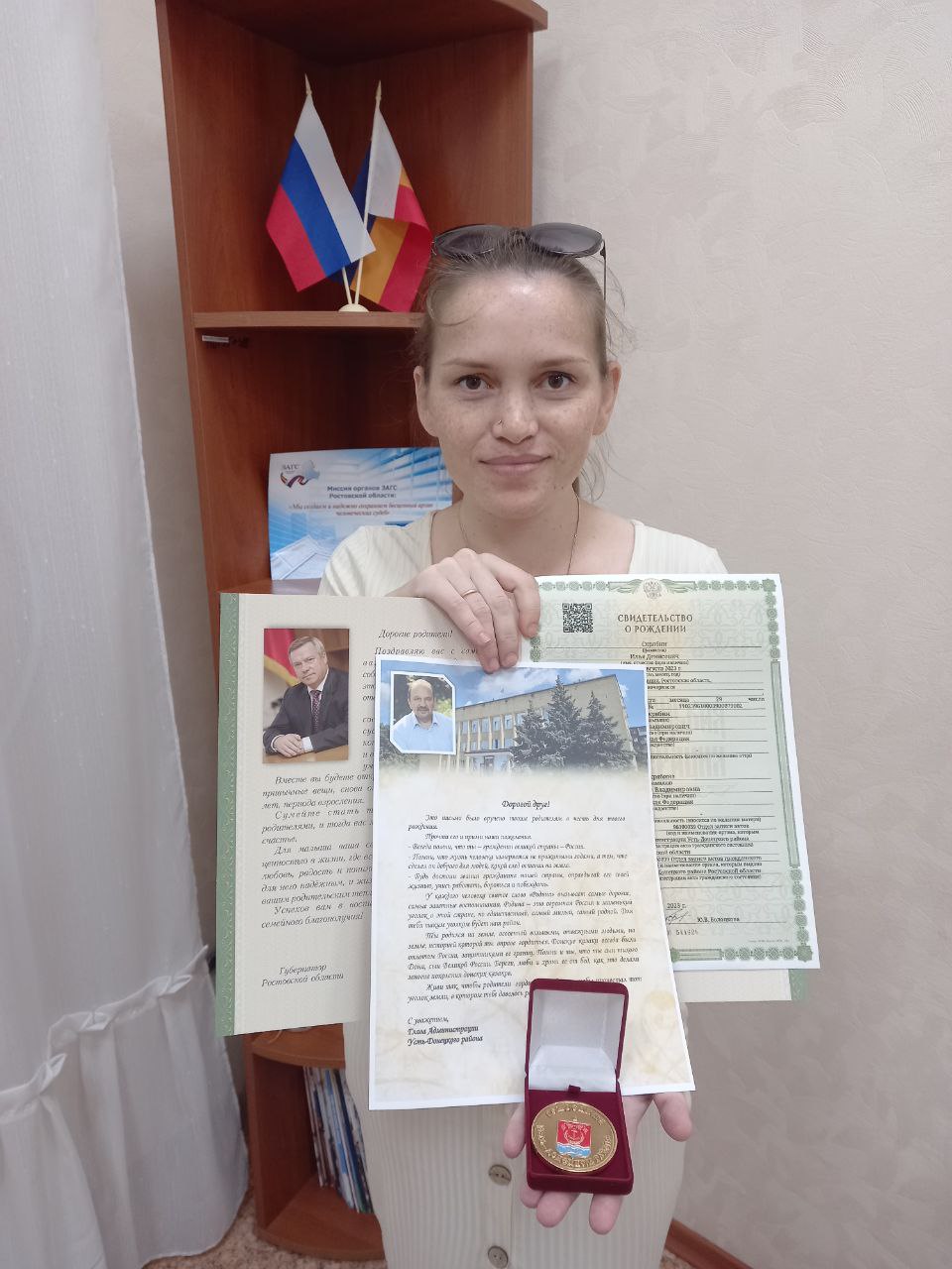 В отделе ЗАГС вручена первая медаль «Рожденный в Усть-Донецком районе»