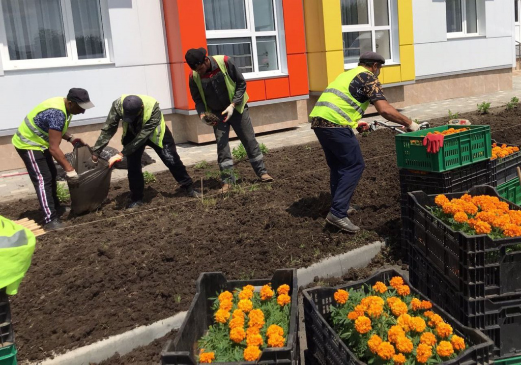В поселке Темерницкий в новом детском саду оформили цветочные клумбы