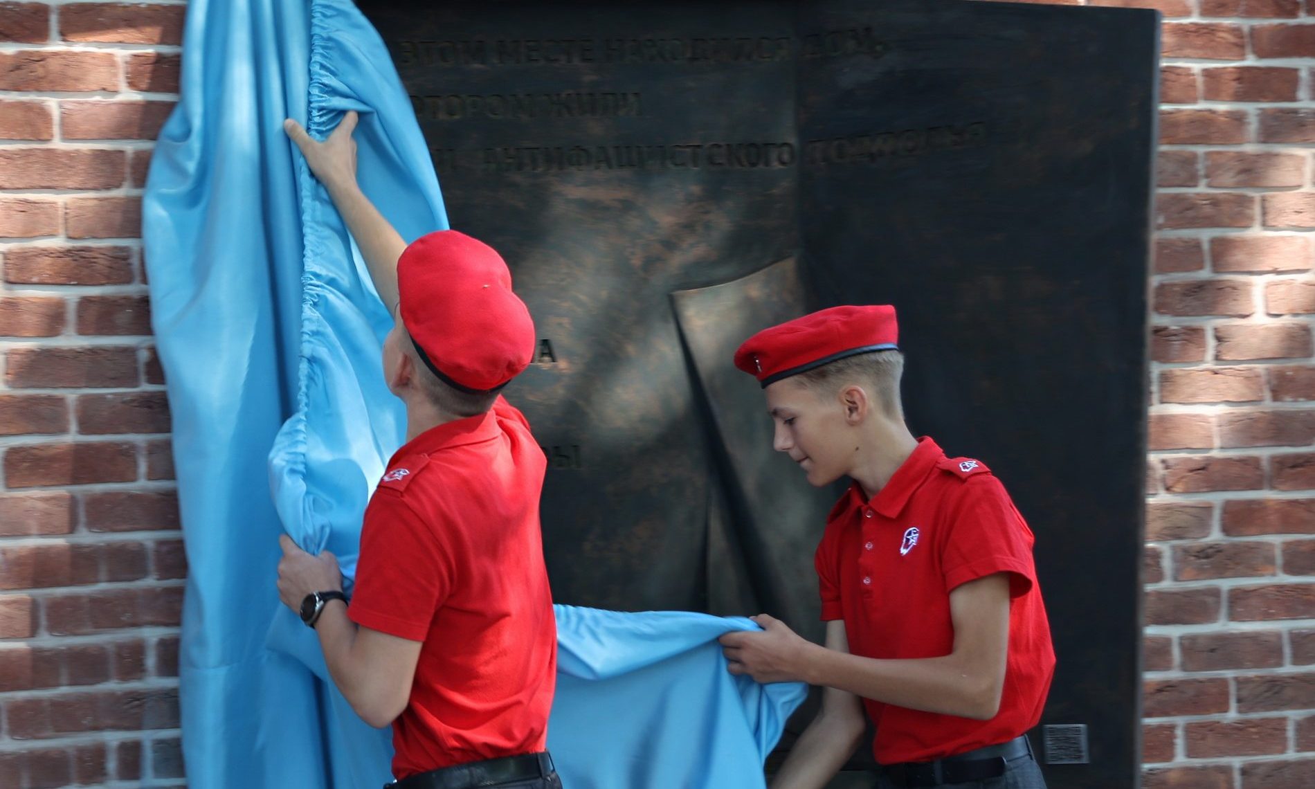 Памятный знак открыт сегодня, 30 августа, на месте дома в переулке Итальянском, 107, где проживали герои антифашистского подполья Раиса, Валентина и Пётр Турубаровы.